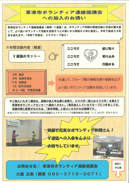 - ● ボランティアについての問題や悩みに知恵を出し合い、協力しましょう。